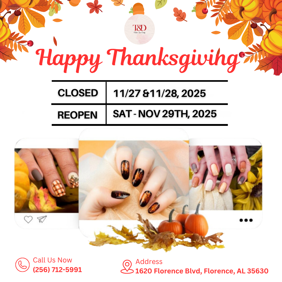 Are you looking for a reliable nail salon to perform nail and spa services? Look no further, T&D Nails Spa Emily is the ideal location. Visit us at 1620 Florence Blvd, Florence, AL 35630 for beauty treatments and find yourself looking even more beautiful with a stylish look! Come experience everyday serenity at our nail salon, a place of relaxation and rejuvenation.